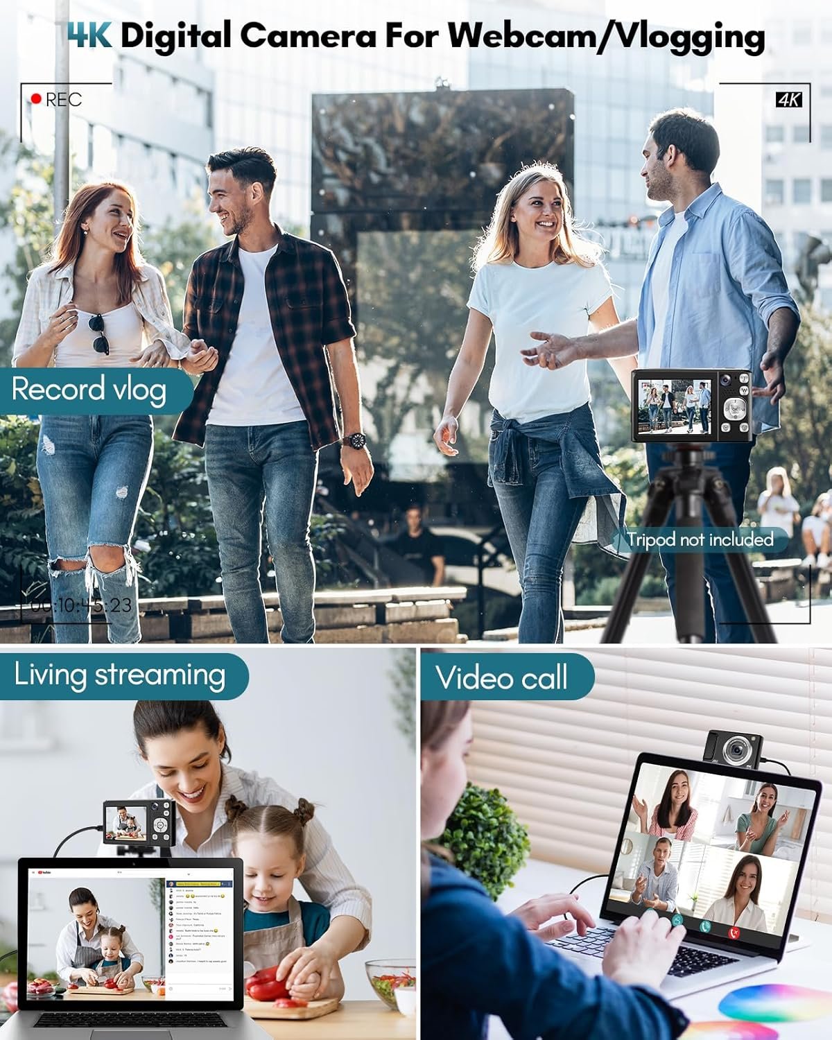 【4K Video Blog Camera with Pause Function】This video blog camera supports 4K video mode, and the dual cameras can switch the content and composition perspective as you wish. Press the “OK” button to pause while recording or playing back video, making use of the pause function. The camera also supports mounting on a tripod for use as a webcam. Equipped with two rechargeable batteries and the ability to record while charging, you never have to worry about running out of power during shooting.