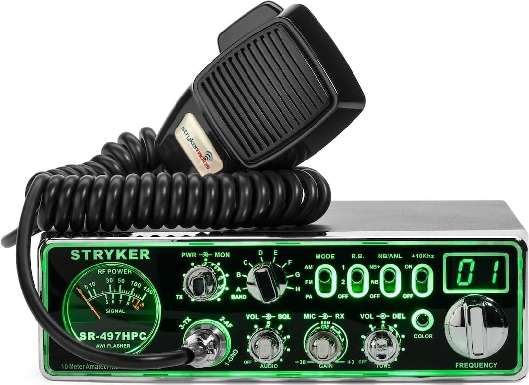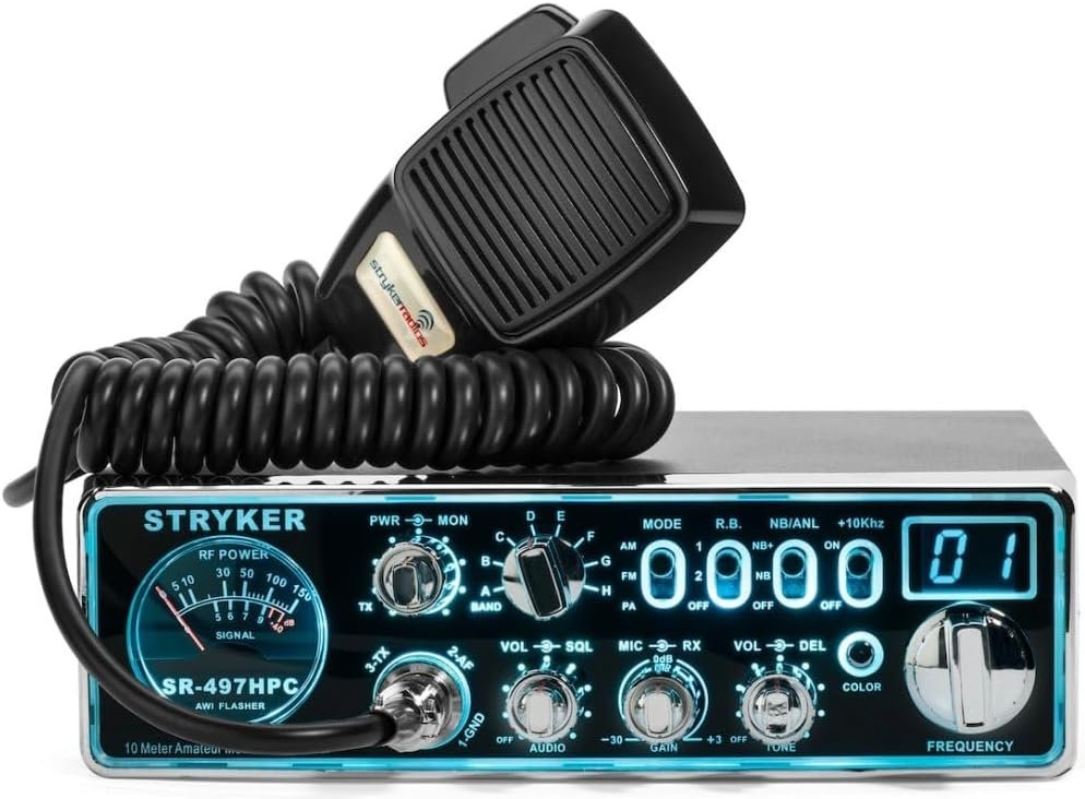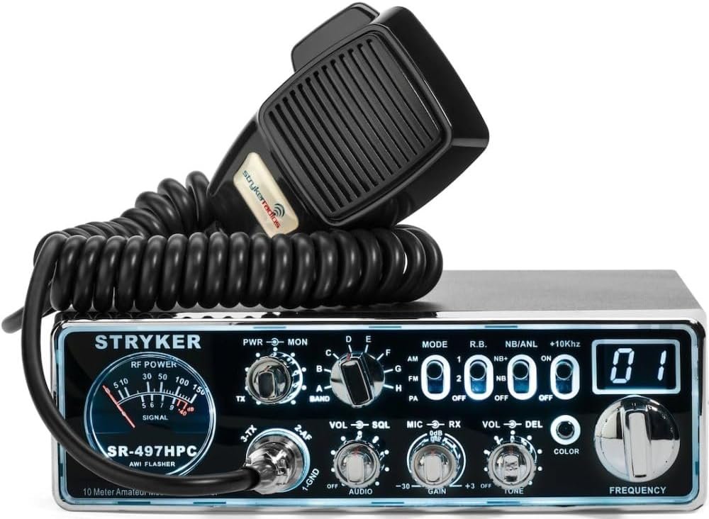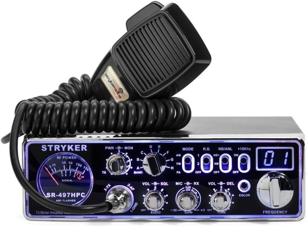 Stryker Radios SR-497-HPC AM/FM 10 Meter Radio, Brilliant 12 Color Black Light Front Panel, Up-Armored Receiver, Two Different Roger Beeps, Multiple Step Dimmer, Variable Power Control