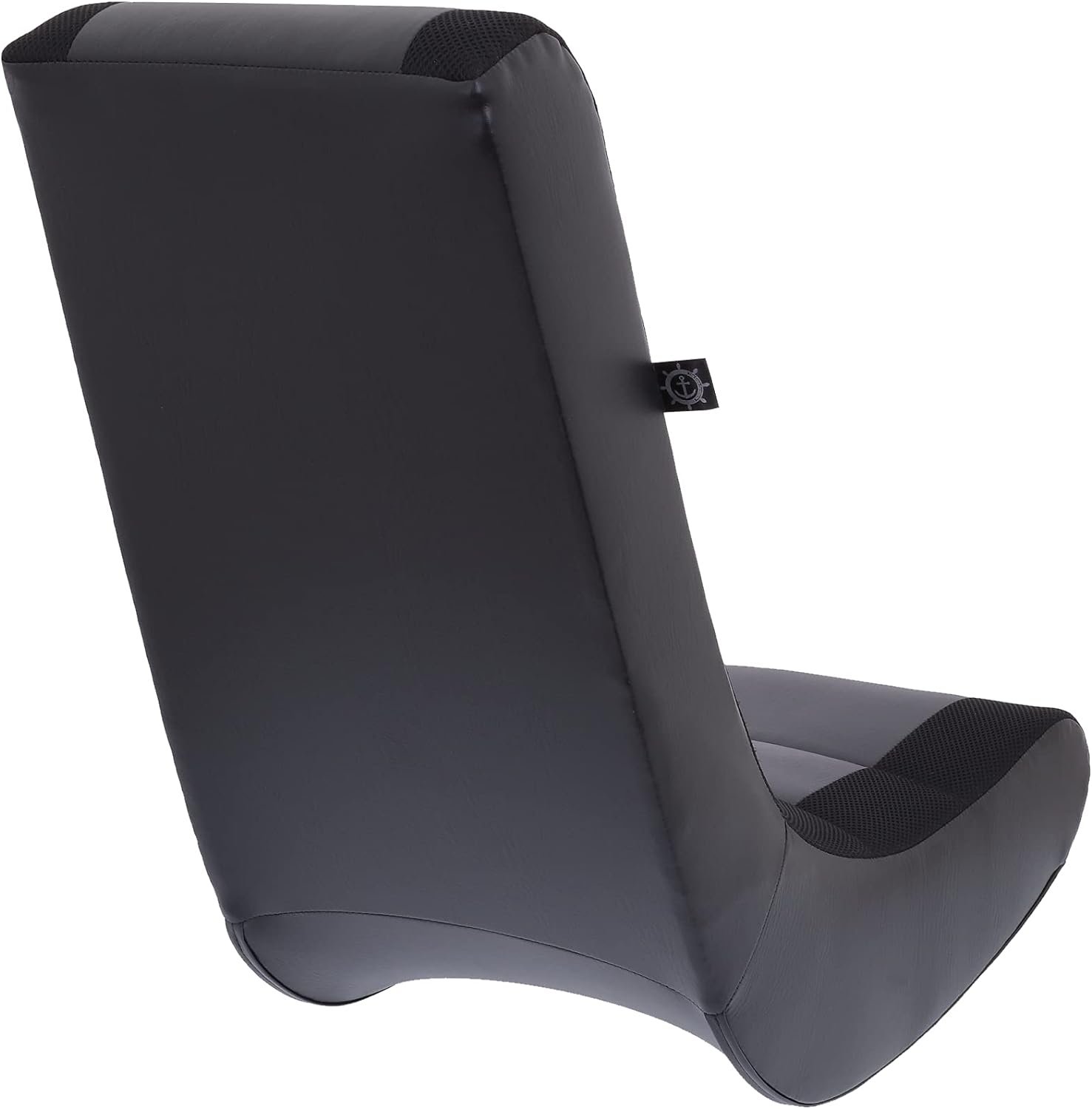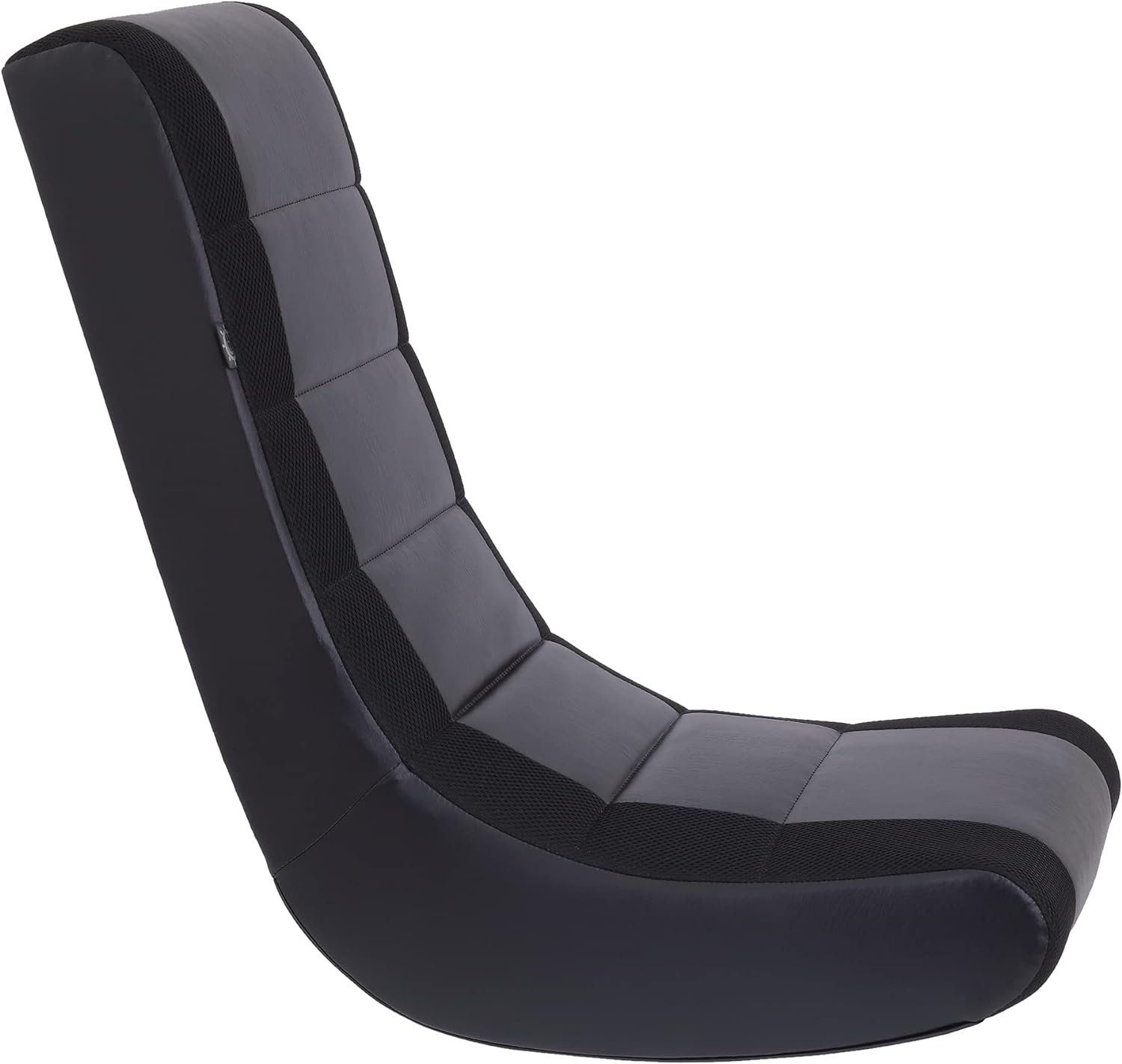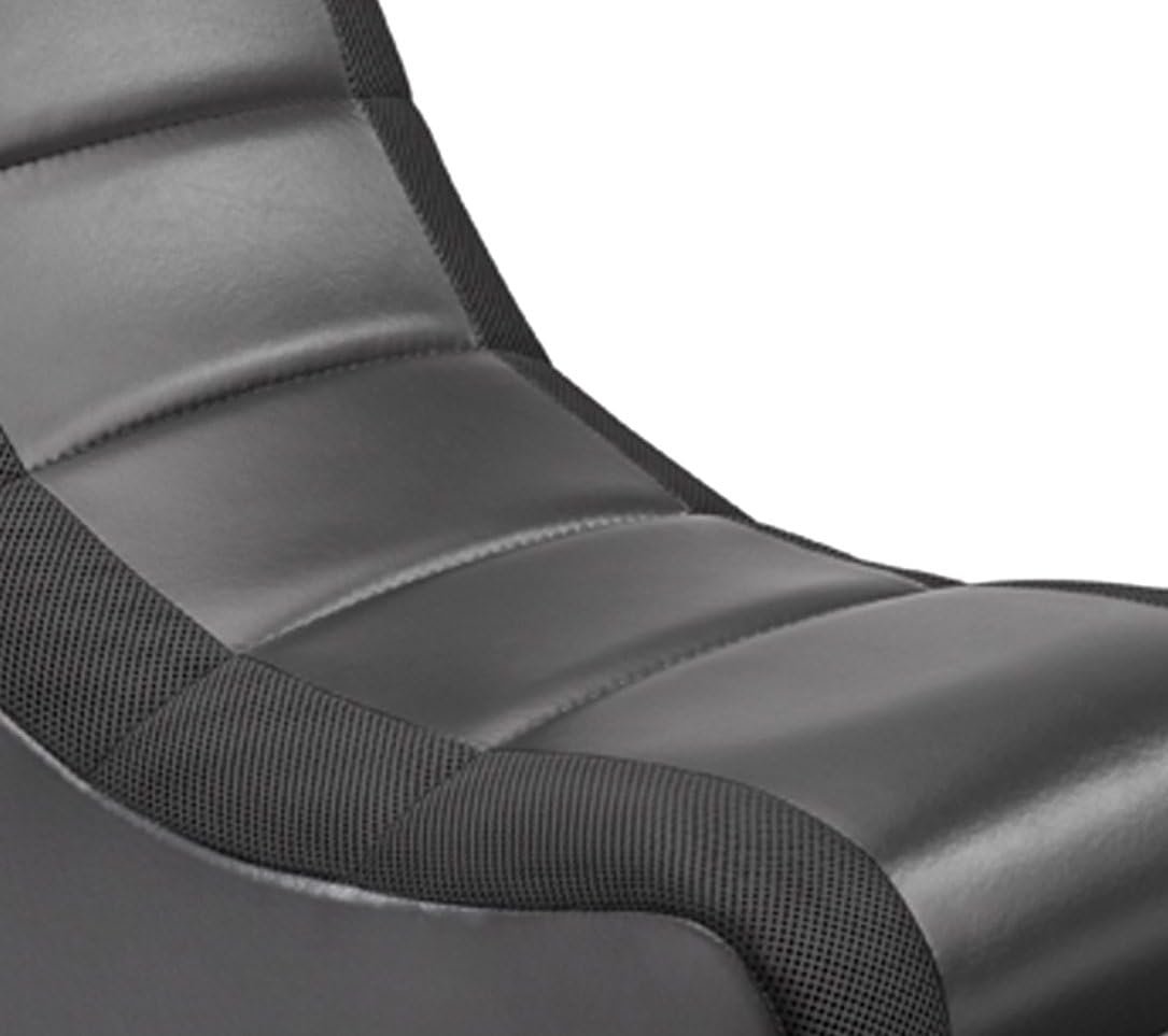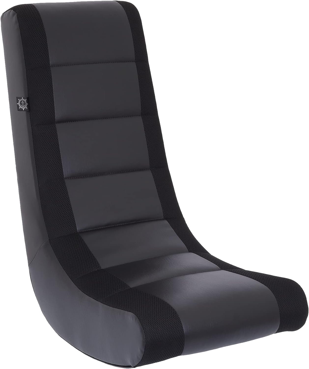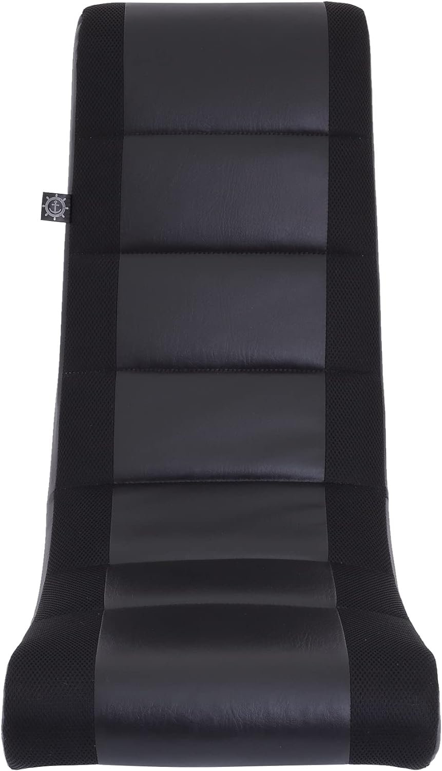 The Crew Furniture Classic Video Rocker Floor Gaming Chair, Kids and Teens, Racing Stripe PU Faux Leather & Polyester Mesh, Black/Black