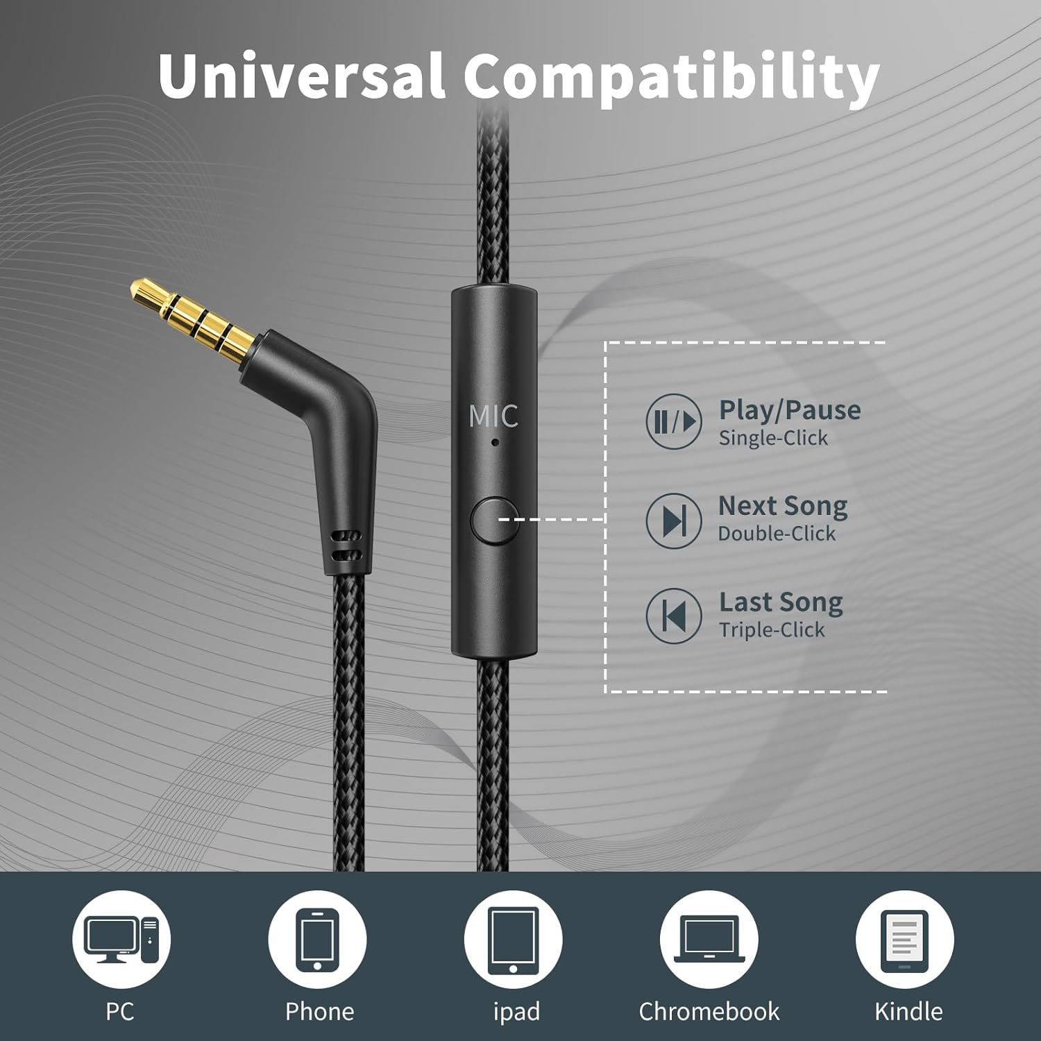 【Wired Headphones with Mic】The wired headphones with a built-in mic for clear, hands-free calls, online learning and music listening. Positioned on the cable for clear, high-quality sound, even in noisy environments. Perfect for busy professionals or students who need reliable sound during calls and video meeting