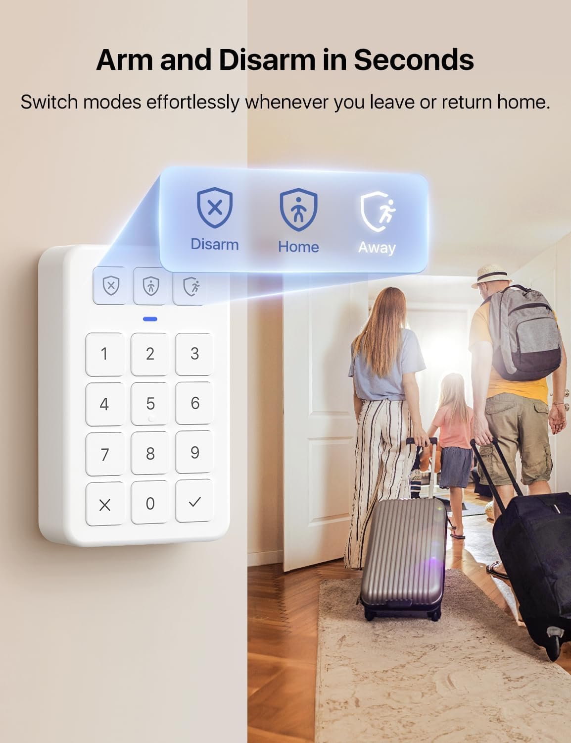 Easy Arming and Disarming: Easily arm and disarm your home security system with the keypad or app; you can press the panic button on the keypad to trigger an alarm and get immediate help; supports multiple passwords and scheduling for extra safety and convenience