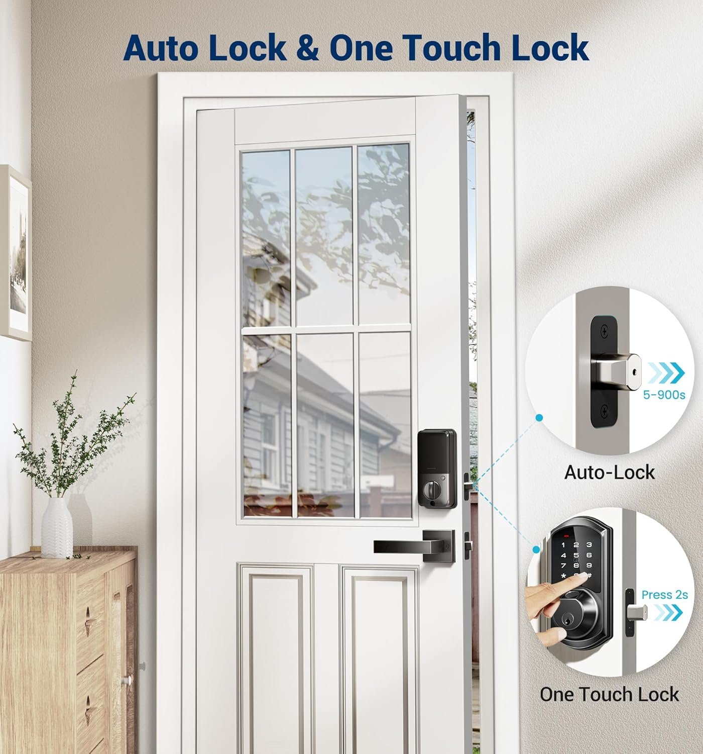 Instant Keyless Entry: Fingerprint or IC card swiftly unlock in 0.3 s. Auto-lock in the time customized or one-touch locking, ideal for busy people and those who lock themselves out