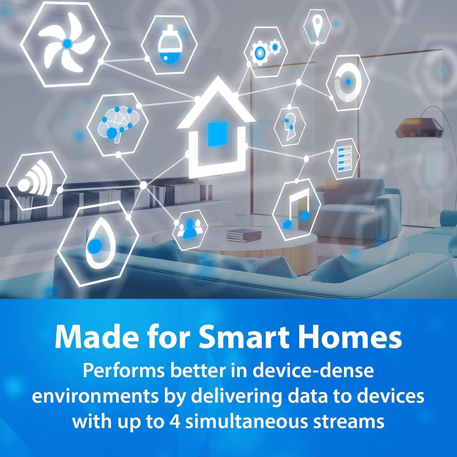 FEATURE RICH – Voice Control, Grow-as-you-need Mesh capabilities, Beamforming, 5dBi antennas, WPA3 Encryption, SmartConnect, Target Wake Time (TWT) for reduce battery consumption, Auto Firmware Updates, Easy App Setup and Management, Backward compatible.