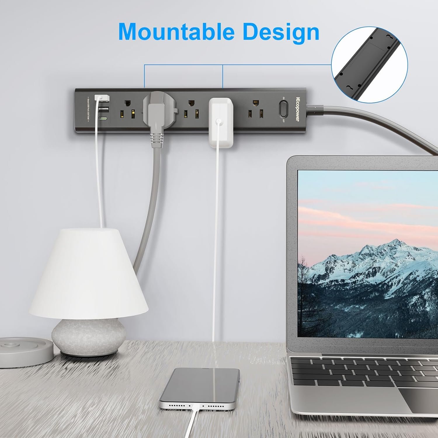 Multi USB C power strip with heavy-duty 5 ft extension cord